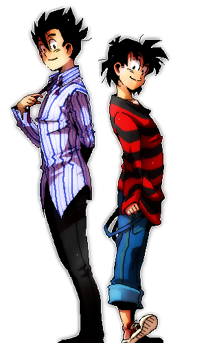 悟飯ちゃんにはストライプ、悟天にはボーダーが似合うかなあと思ってお絵かき。等身がなんか・・・。